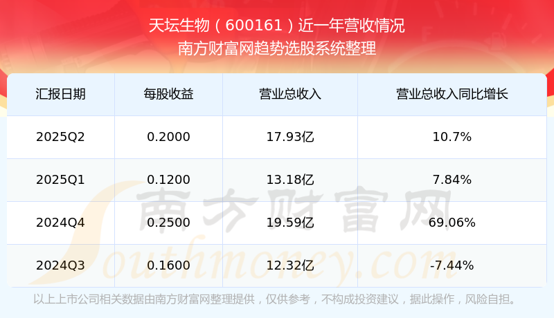在2025年第二季度,天壇生物的業(yè)績(jī)表現(xiàn),主營(yíng)業(yè)務(wù)收入達(dá)到17.93億元,實(shí)現(xiàn)了10.7%的同比增長(zhǎng)率。同時(shí),公司歸母凈利潤(rùn)錄得3.88億元,同比增長(zhǎng)-5.13%。