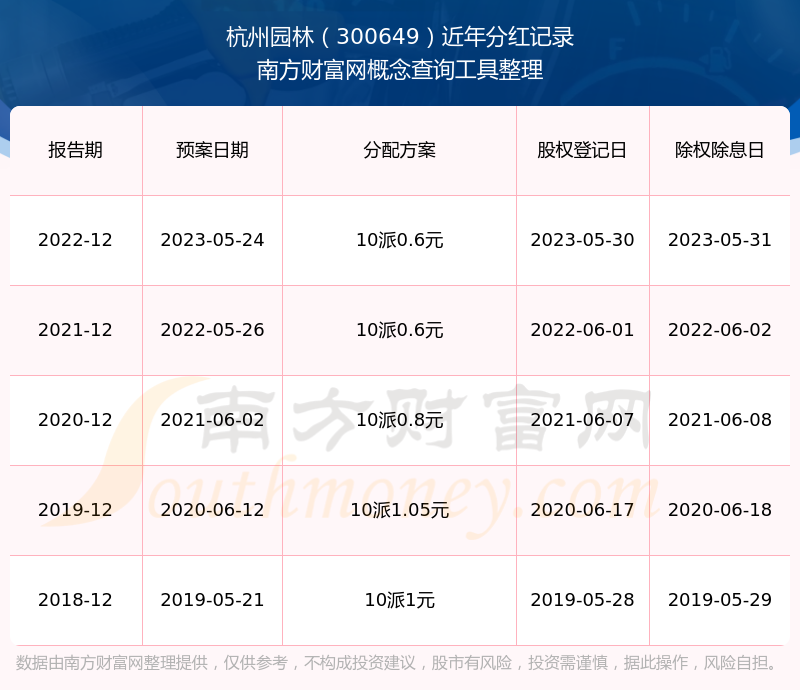 一、杭州園林(300649)股票分紅記錄