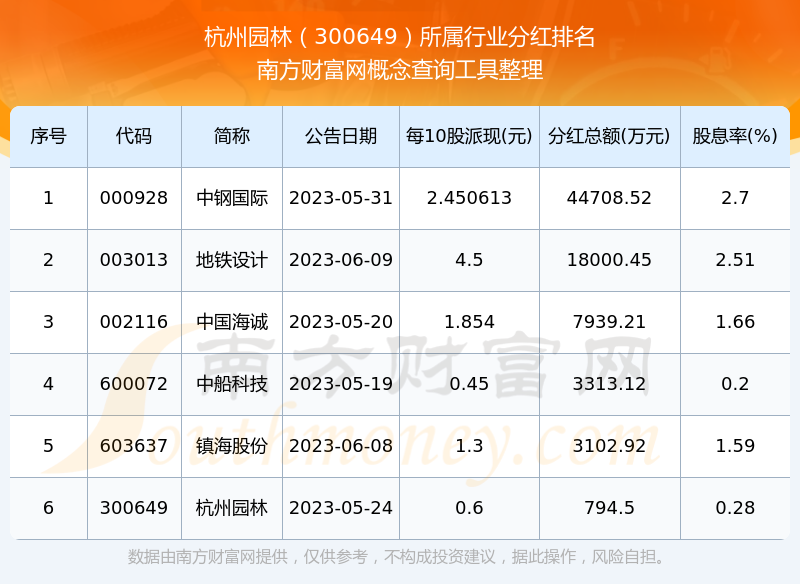 二、杭州園林300649行業(yè)分紅排名