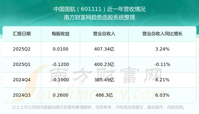 財(cái)報(bào)顯示,2025年第二季度中國國航營收407.34億元,同比增長3.24%,凈利潤2.38億元,同比增長121.51%。