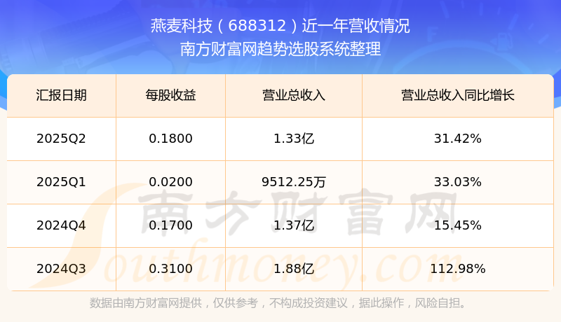 燕麥科技2025年第二季度財(cái)報(bào)顯示,公司主營(yíng)收入1.33億元,同比31.42%;歸母凈利潤(rùn)2641.71萬(wàn)元,同比64.39%;扣非凈利潤(rùn)2329.14萬(wàn)元,同比86.33%;