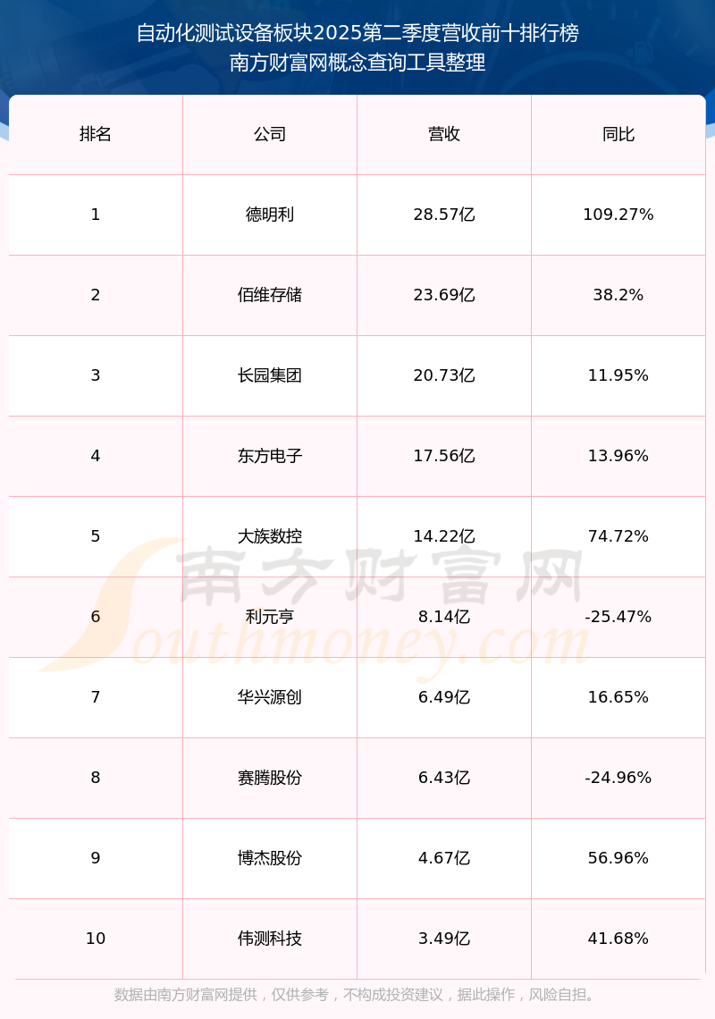 按照南方財(cái)富網(wǎng)概念查詢工具統(tǒng)計(jì),該股所屬板塊為自動(dòng)化測(cè)試設(shè)備板塊,該板塊共有15只股票,燕麥科技2025第二季度營(yíng)收在該板塊中排名為第15名,該板塊2025第二季度營(yíng)收排名前十的股票如下表: