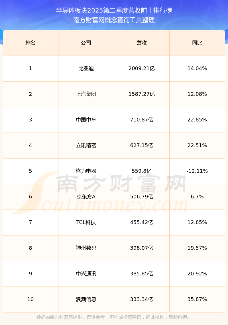按照南方財富網(wǎng)概念查詢工具統(tǒng)計,該股所屬板塊為半導(dǎo)體板塊,該板塊共有529只股票,睿能科技2025第二季度營收在該板塊中排名為第247名,該板塊2025第二季度營收排名前十的股票如下表: