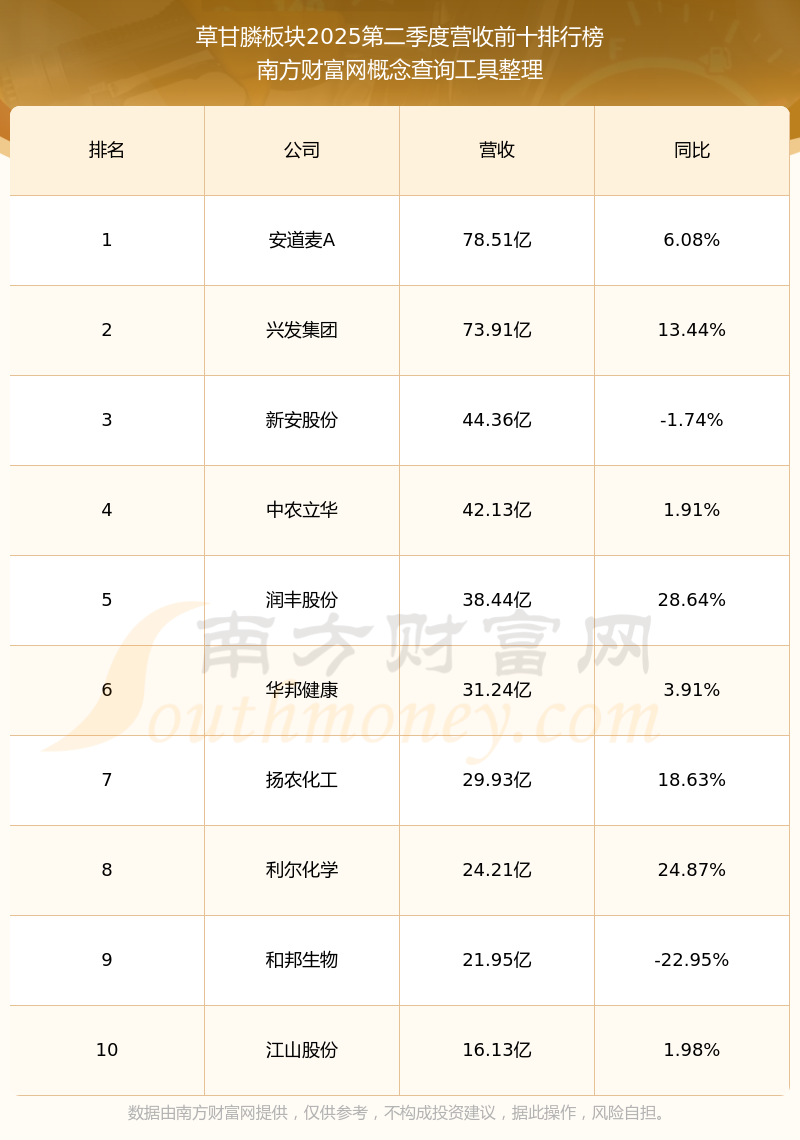 按照南方財富網(wǎng)概念查詢工具統(tǒng)計,該股所屬板塊為草甘膦板塊,該板塊共有24只股票,新安股份2025第二季度營收在該板塊中排名為第3名,該板塊2025第二季度營收排名前十的股票如下表: