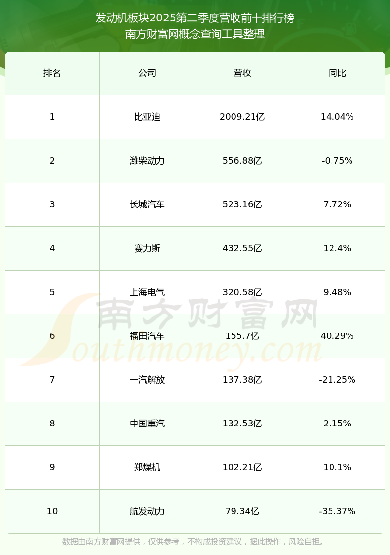 按照南方財富網(wǎng)概念查詢工具統(tǒng)計,該股所屬板塊為發(fā)動機板塊,該板塊共有118只股票,全柴動力2025第二季度營收在該板塊中排名為第45名,該板塊2025第二季度營收排名前十的股票如下表: