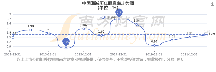 近年中國(guó)海誠(chéng)年度股息率走勢(shì)如下圖: