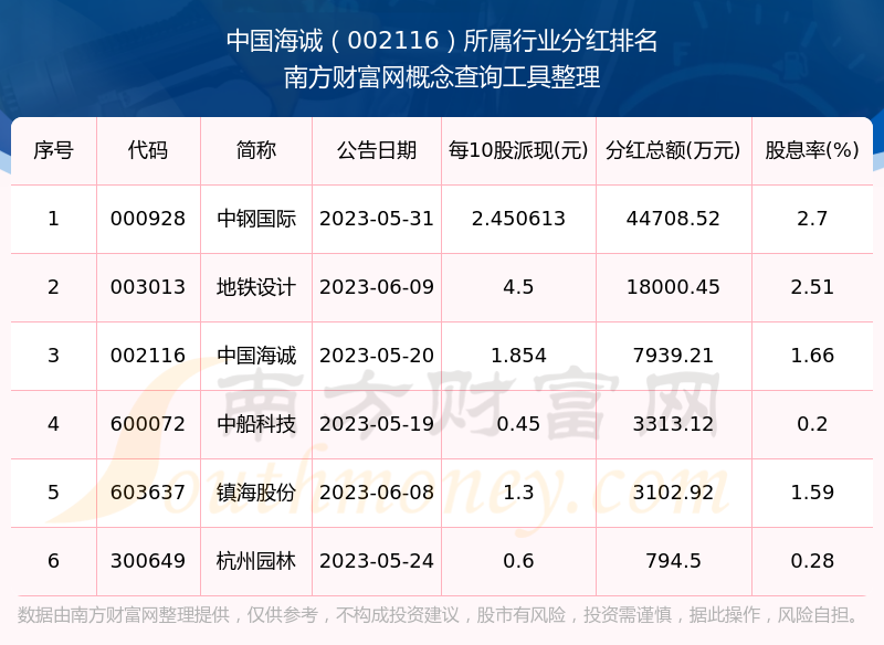 二、中國(guó)海誠(chéng)002116行業(yè)分紅排名