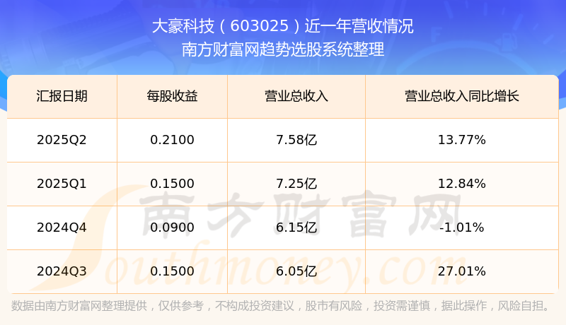 一、大豪科技(603025)股票營收情況
