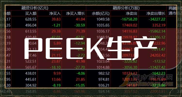 PEEK生產(chǎn)概念龍頭有哪些?據(jù)南方財富網(wǎng)概念查詢工具數(shù)據(jù)顯示,PEEK生產(chǎn)概念龍頭有: