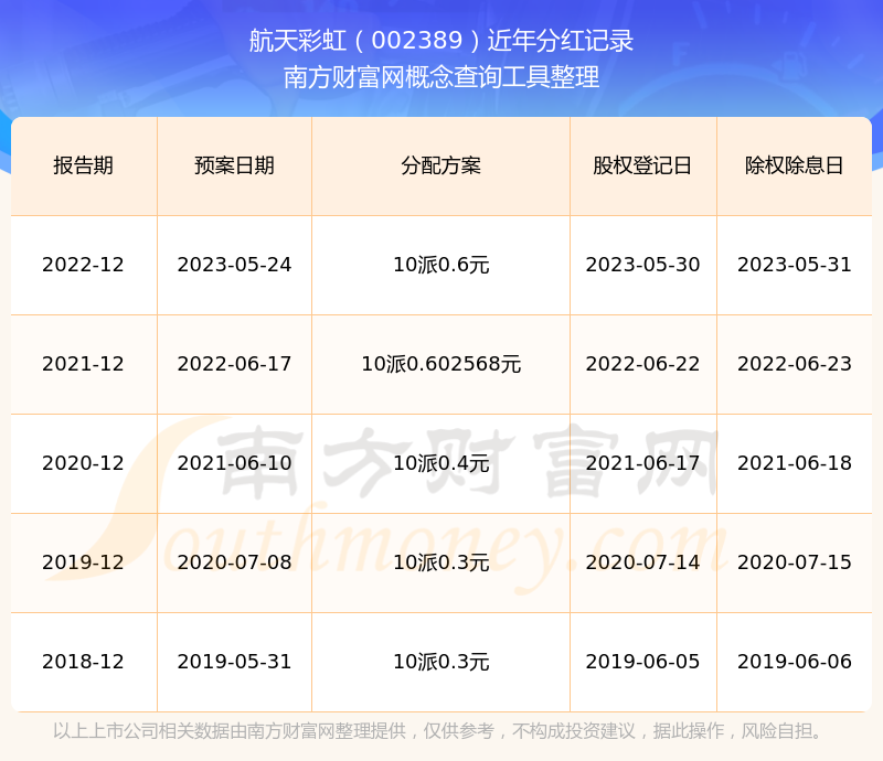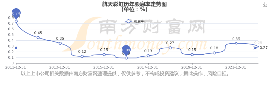 航天彩虹最新一次公布的分紅方案:10派0.6元。