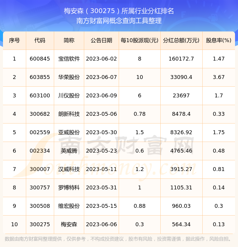 二、梅安森300275行業(yè)分紅排名