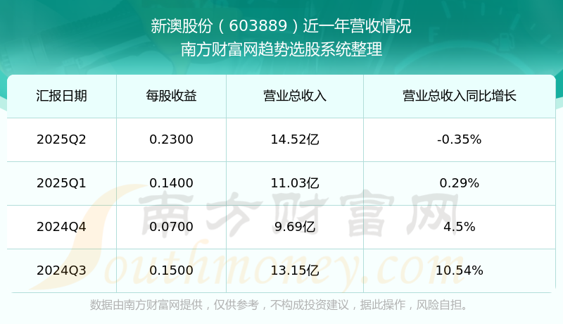 新澳股份2025年第二季度顯示,公司主營收入14.52億元,同比-0.35%;歸母凈利潤1.69億元,同比-0.41%;扣非凈利潤1.67億元,同比0.46%;