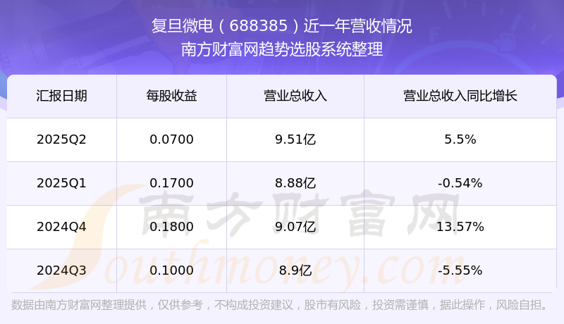 復(fù)旦微電2025年第二季度公司實(shí)現(xiàn)營業(yè)收入9.51億元,同比5.5%;歸母凈利潤5743.66萬元,同比-69.26%。