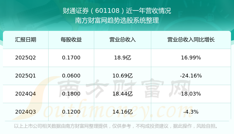 財(cái)通證券2025年第二季度財(cái)報(bào)顯示,公司主營收入18.9億元,同比16.99%;歸母凈利潤7.94億元,同比68.56%;扣非凈利潤7.7億元,同比68.12%。