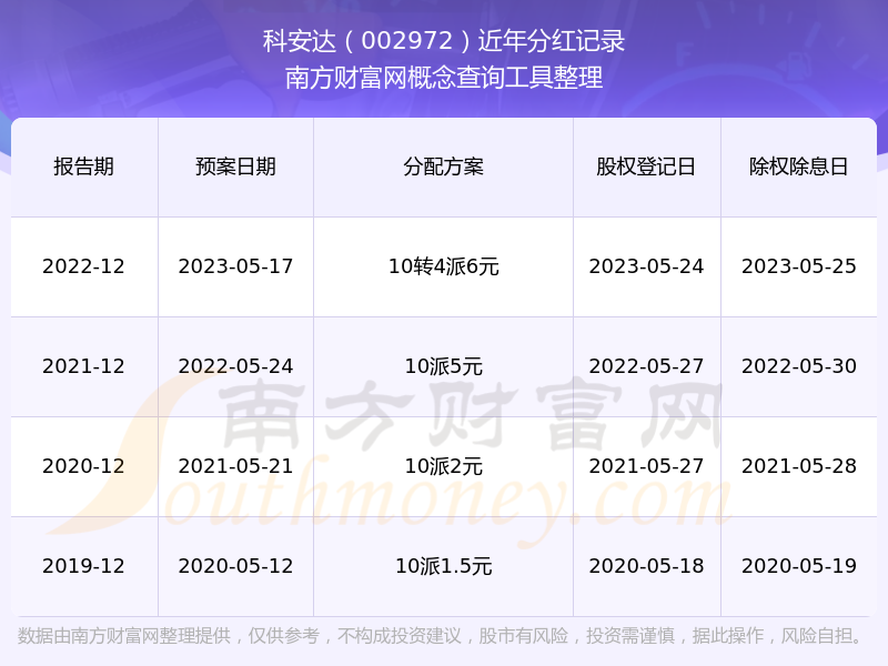 科安達最新一次公布的分紅方案:10轉(zhuǎn)4派6元。