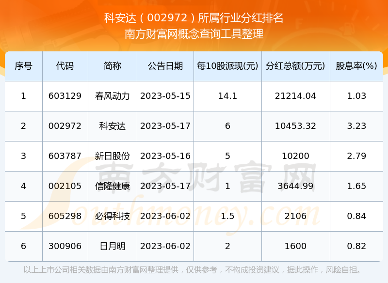按照南方財富網(wǎng)趨勢選股系統(tǒng)統(tǒng)計,科安達所屬行業(yè)為控制系統(tǒng)行業(yè),控制系統(tǒng)行業(yè)分紅排名情況如下表: