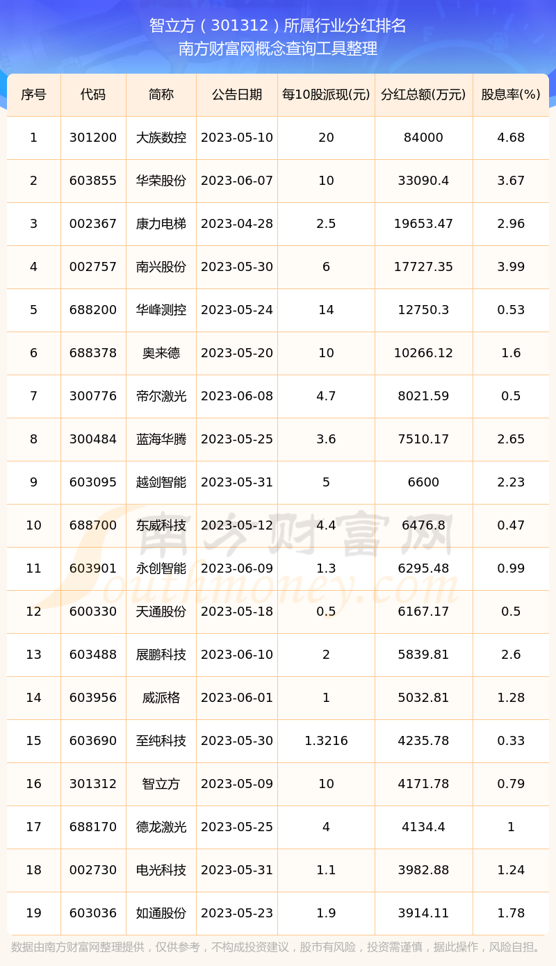 按照南方財富網(wǎng)趨勢選股系統(tǒng)統(tǒng)計,智立方所屬行業(yè)為工業(yè)自動化設(shè)備行業(yè),工業(yè)自動化設(shè)備行業(yè)分紅排名情況如下表: