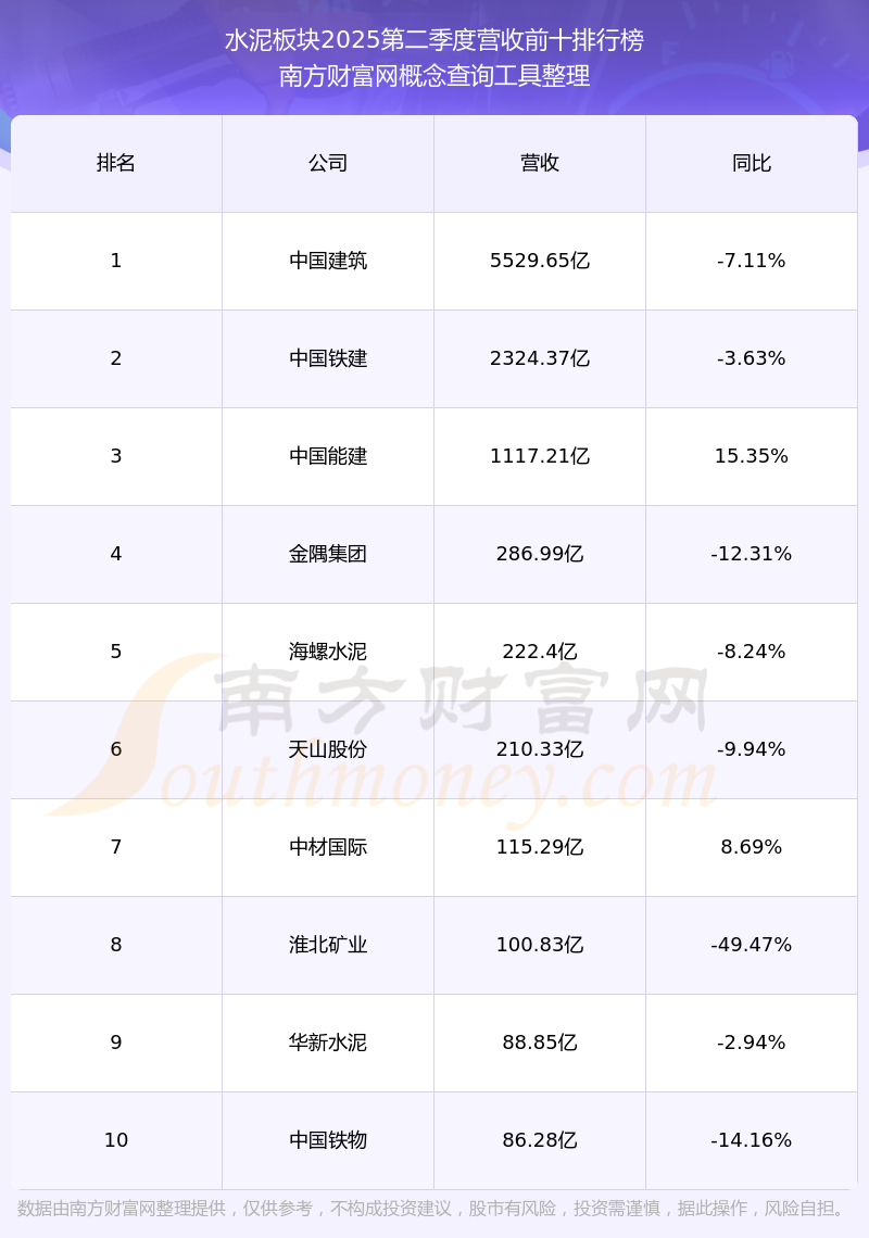 按照南方財富網(wǎng)概念查詢工具統(tǒng)計,該股所屬板塊為水泥板塊,該板塊共有63只股票,西藏天路2025第二季度營收在該板塊中排名為第34名,該板塊2025第二季度營收排名前十的股票如下表:
