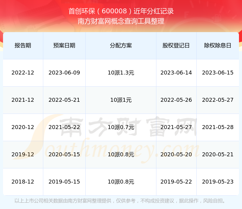 近年首創(chuàng)環(huán)保分紅情況如下表所示: