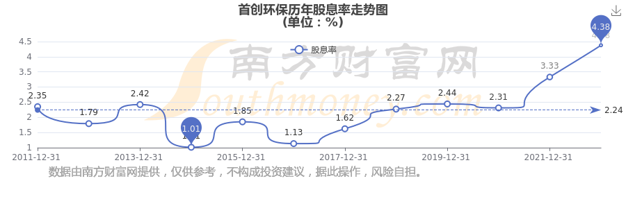 近年首創(chuàng)環(huán)保年度股息率走勢(shì)如下圖: