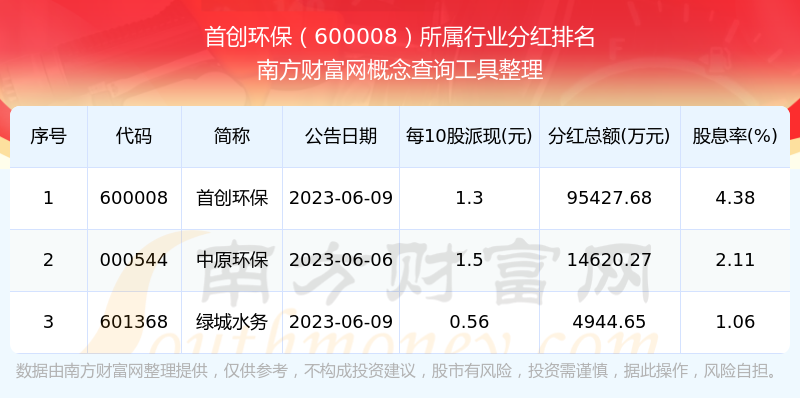 二、首創(chuàng)環(huán)保600008行業(yè)分紅排名