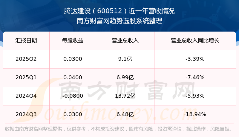 在2025年第二季度,騰達(dá)建設(shè)的業(yè)績(jī)表現(xiàn),主營(yíng)業(yè)務(wù)收入達(dá)到9.1億元,實(shí)現(xiàn)了-3.39%的同比增長(zhǎng)率。同時(shí),公司歸母凈利潤(rùn)錄得4937.12萬(wàn)元,同比增長(zhǎng)823.57%。