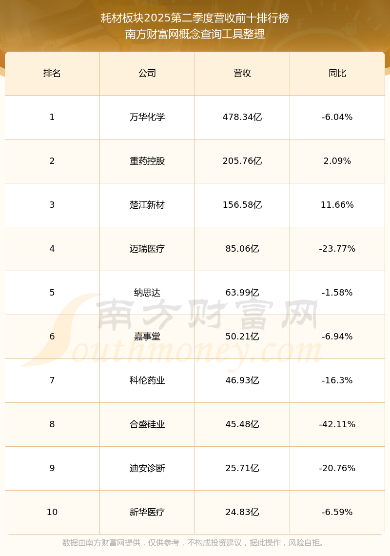 按照南方財富網(wǎng)概念查詢工具統(tǒng)計,該股所屬板塊為耗材板塊,該板塊共有65只股票,國發(fā)股份2025第二季度營收在該板塊中排名為第65名,該板塊2025第二季度營收排名前十的股票如下表: