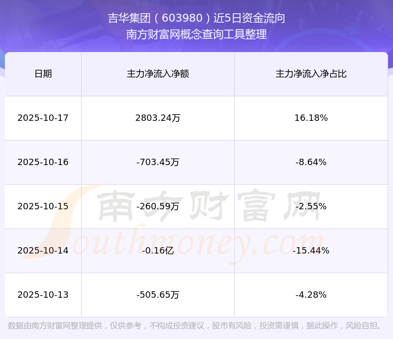 二、吉華集團(tuán)(603980)近期盤面、資金面情況