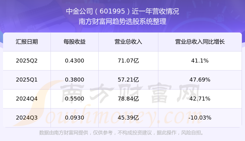 中金公司股票近一年營收情況如下表: