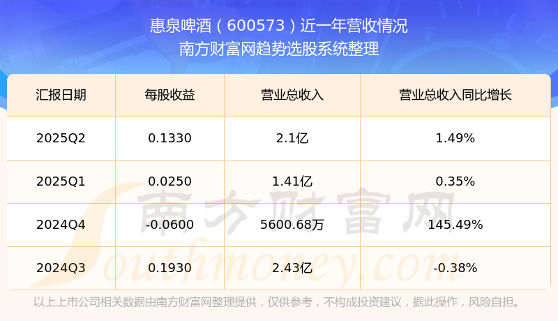一、惠泉啤酒(600573)股票營(yíng)收情況