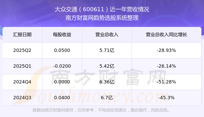財(cái)報(bào)顯示,2025年第二季度大眾交通營(yíng)收5.71億元,同比增長(zhǎng)-28.93%,凈利潤(rùn)1.12億元,同比增長(zhǎng)19.72%。