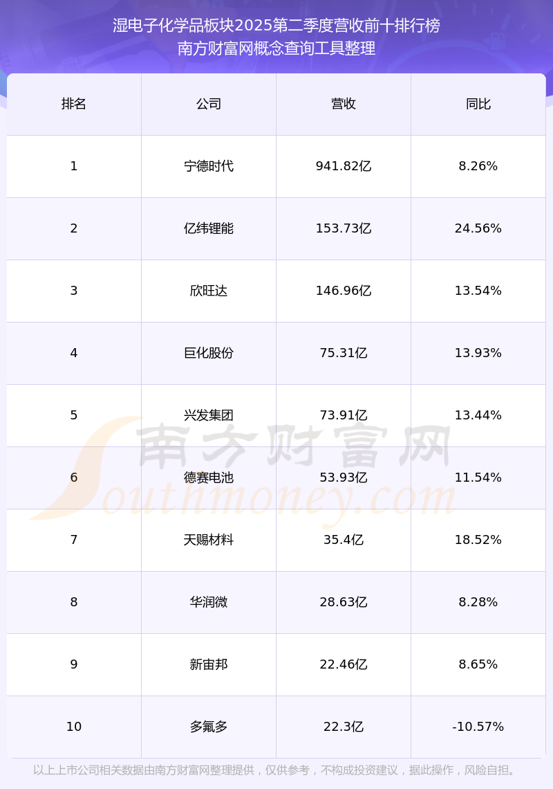 按照南方財富網(wǎng)概念查詢工具統(tǒng)計,該股所屬板塊為濕電子化學(xué)品板塊,該板塊共有36只股票,格林達2025第二季度營收在該板塊中排名為第35名,該板塊2025第二季度營收排名前十的股票如下表: