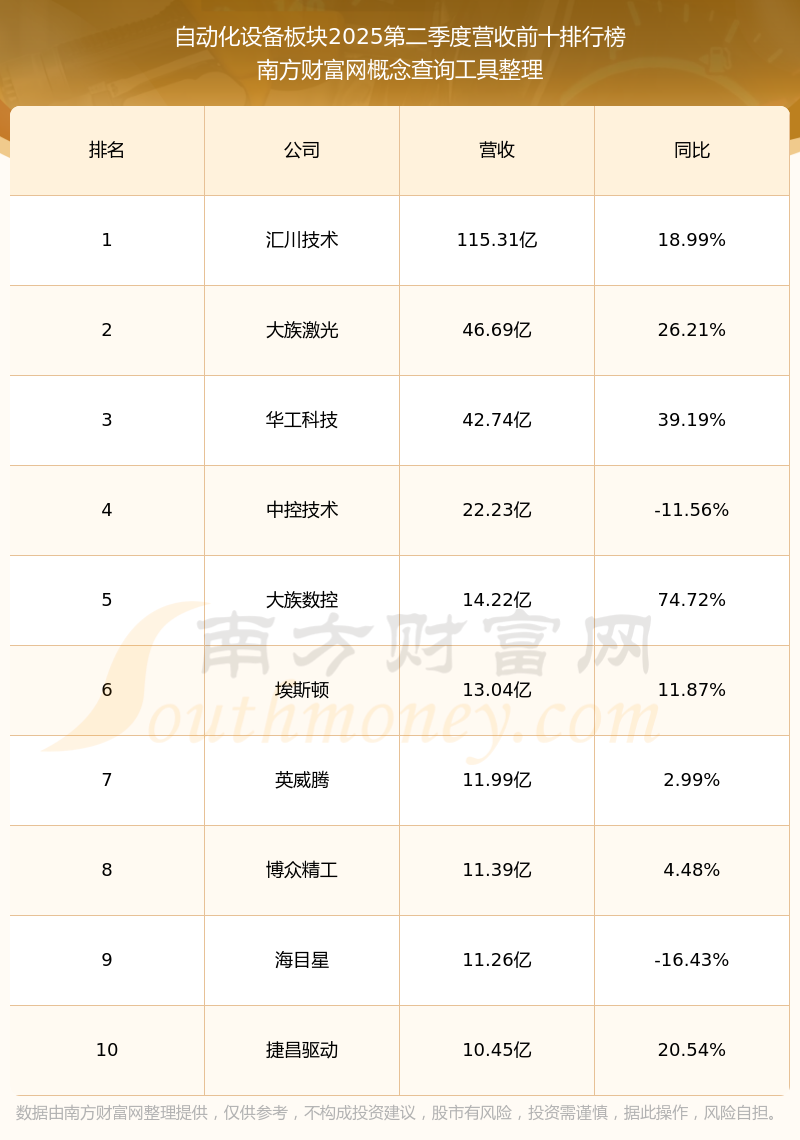 按照南方財富網(wǎng)概念查詢工具統(tǒng)計,該股所屬板塊為自動化設備板塊,該板塊共有86只股票,博眾精工2025第二季度營收在該板塊中排名為第8名,該板塊2025第二季度營收排名前十的股票如下表: