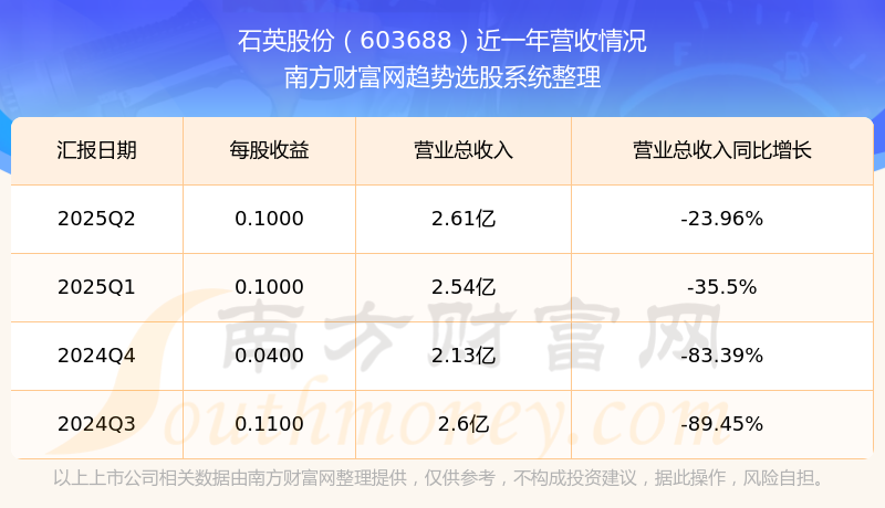 按照南方財富網(wǎng)概念查詢工具統(tǒng)計,該股所屬板塊為石英砂板塊,該板塊共有24只股票,石英股份2025第二季度營收在該板塊中排名為第16名,該板塊2025第二季度營收排名前十的股票如下表: