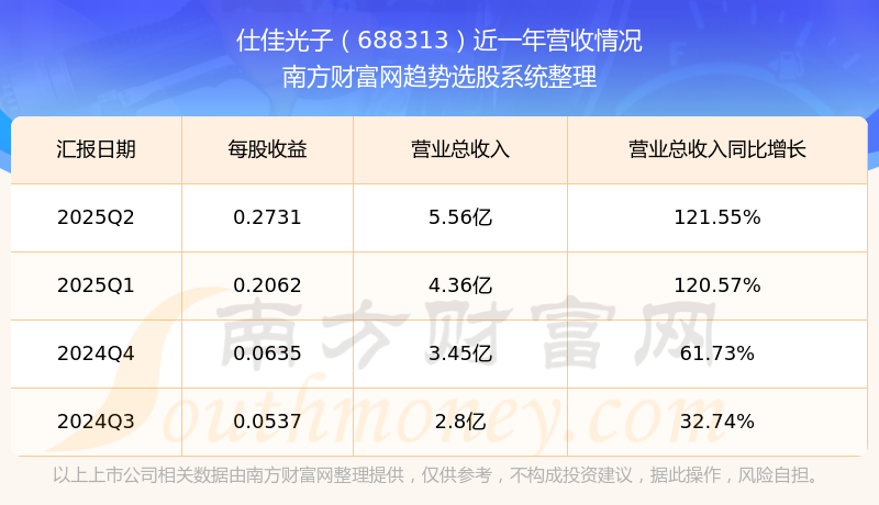 仕佳光子披露了2025年第二季度財(cái)報(bào)。報(bào)告顯示,仕佳光子2025年第二季度實(shí)現(xiàn)營(yíng)收5.56億元,同比121.55%;歸母凈利潤(rùn)1.23億元,同比3414.06%。