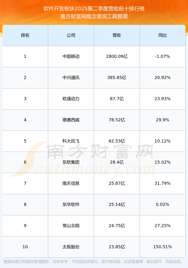 按照南方財(cái)富網(wǎng)概念查詢工具統(tǒng)計(jì),該股所屬板塊為軟件開發(fā)板塊,該板塊共有196只股票,頂點(diǎn)軟件2025第二季度營收在該板塊中排名為第138名,該板塊2025第二季度營收排名前十的股票如下表: