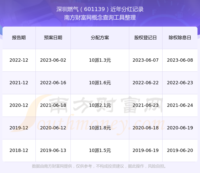 一、深圳燃氣(601139)股票分紅記錄