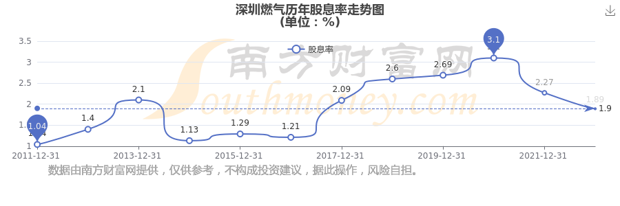 近年深圳燃氣年度股息率走勢如下圖: