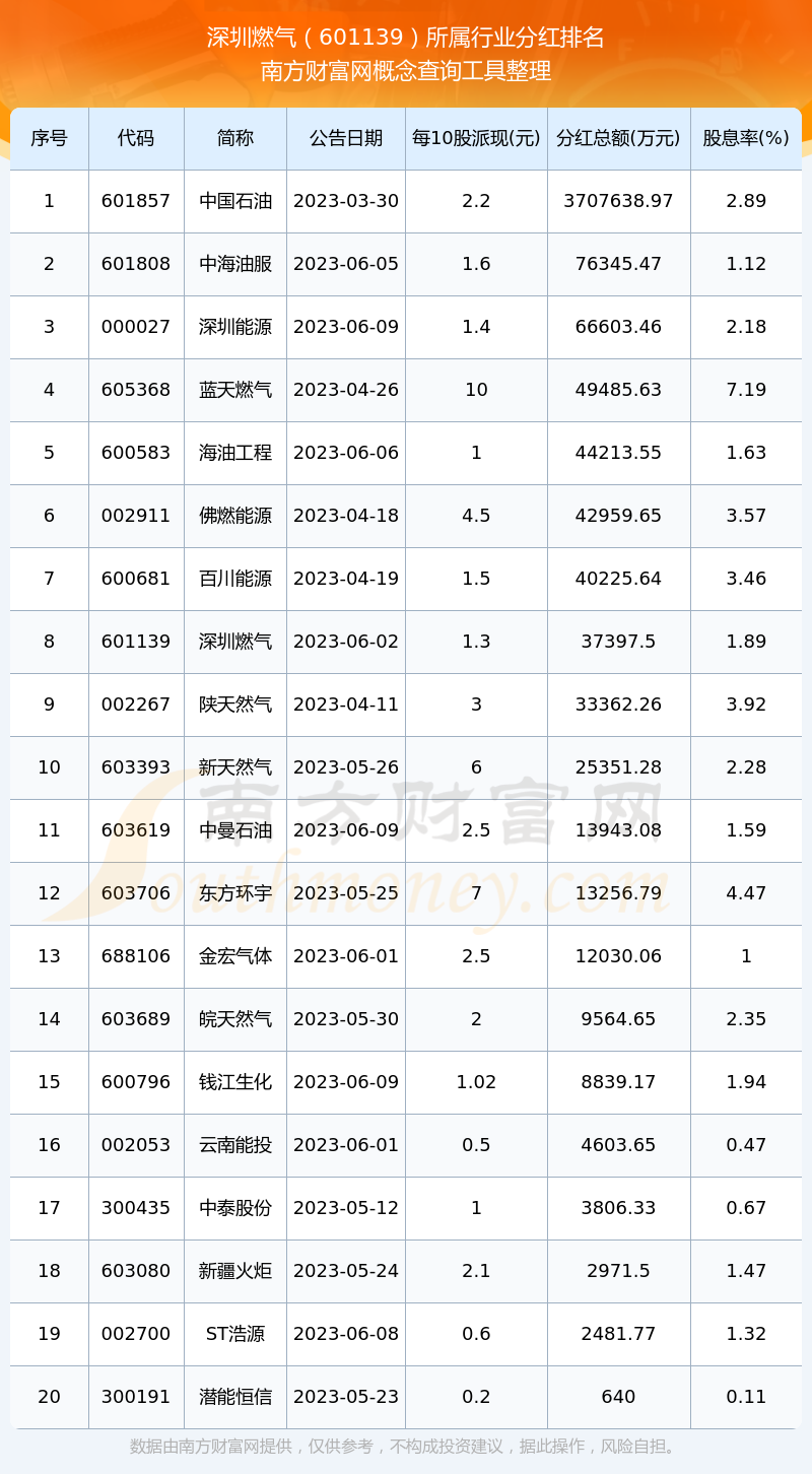 二、深圳燃氣601139行業(yè)分紅排名