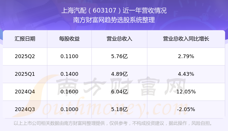 按照南方財(cái)富網(wǎng)概念查詢工具統(tǒng)計(jì),該股所屬板塊為汽車零部件板塊,該板塊共有567只股票,上海汽配2025第二季度營收在該板塊中排名為第295名,該板塊2025第二季度營收排名前十的股票如下表: