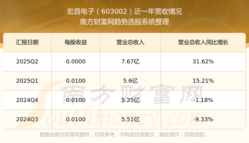 宏昌電子2025年第二季度財報顯示,公司主營收入7.67億元,同比31.62%;歸母凈利潤987.96萬元,同比-25.46%;扣非凈利潤830.88萬元,同比-19.62%;