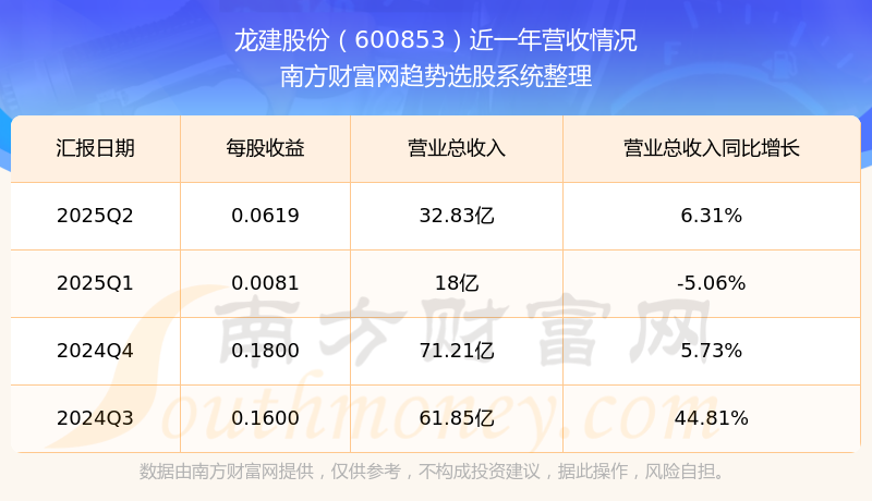 A股上市公司龍建股份(代碼:600853)發(fā)布2025年第二季度財(cái)報(bào),公司2025年第二季度歸屬于上市公司股東的凈利潤為6171.86萬元,凈利潤同比增長-1.44%,環(huán)比增長651.11%。