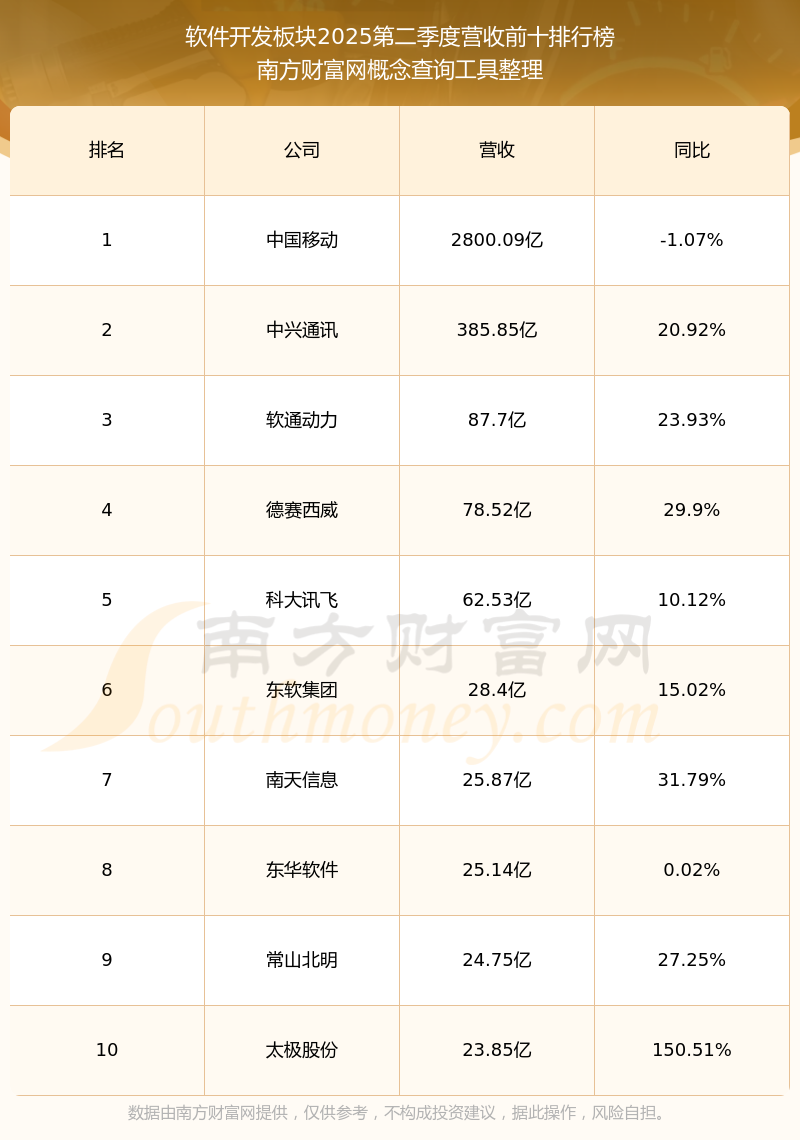 按照南方財(cái)富網(wǎng)概念查詢工具統(tǒng)計(jì),該股所屬板塊為軟件開發(fā)板塊,該板塊共有196只股票,南威軟件2025第二季度營(yíng)收在該板塊中排名為第123名,該板塊2025第二季度營(yíng)收排名前十的股票如下表: