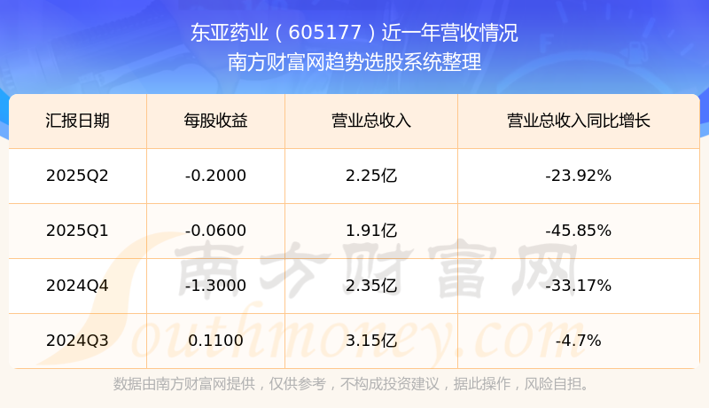 2025年第二季度,東亞藥業(yè)營(yíng)收同比-23.92%,凈利潤(rùn)同比-376.37%。
