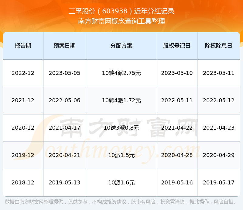 三孚股份最新一次公布的分紅方案:10轉(zhuǎn)4派2.75元。