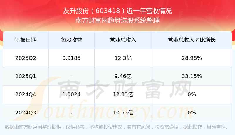 一、友升股份(603418)股票營收情況