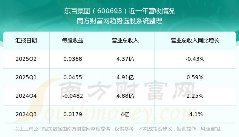在2025年第二季度,東百集團的業(yè)績表現(xiàn),主營業(yè)務收入達到4.37億元,實現(xiàn)了-0.43%的同比增長率。同時,公司歸母凈利潤錄得3196.66萬元,同比增長-0.75%。