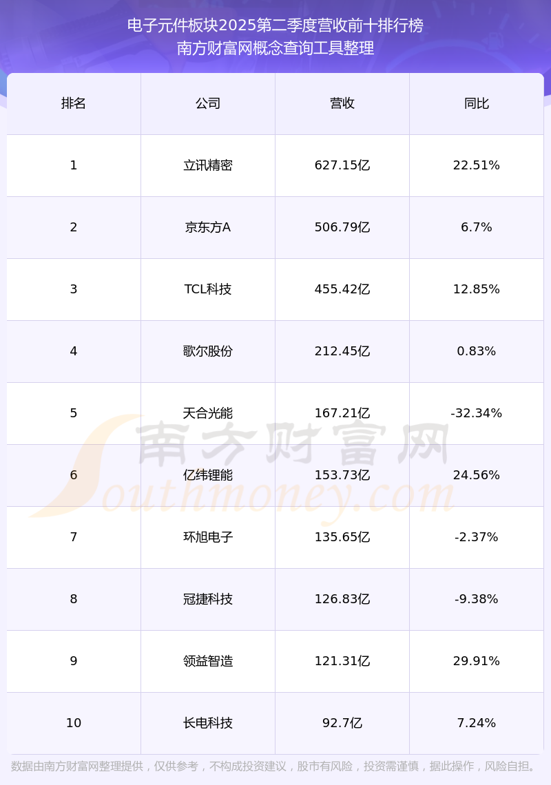 按照南方財富網(wǎng)概念查詢工具統(tǒng)計,該股所屬板塊為電子元件板塊,該板塊共有354只股票,天微電子2025第二季度營收在該板塊中排名為第352名,該板塊2025第二季度營收排名前十的股票如下表: