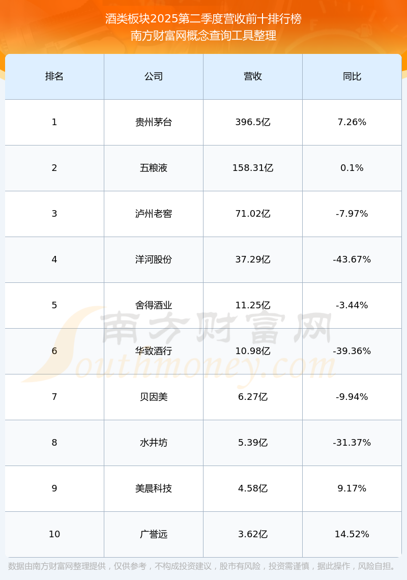按照南方財(cái)富網(wǎng)概念查詢工具統(tǒng)計(jì),該股所屬板塊為酒類板塊,該板塊共有17只股票,會(huì)稽山2025第二季度營(yíng)收在該板塊中排名為第12名,該板塊2025第二季度營(yíng)收排名前十的股票如下表: