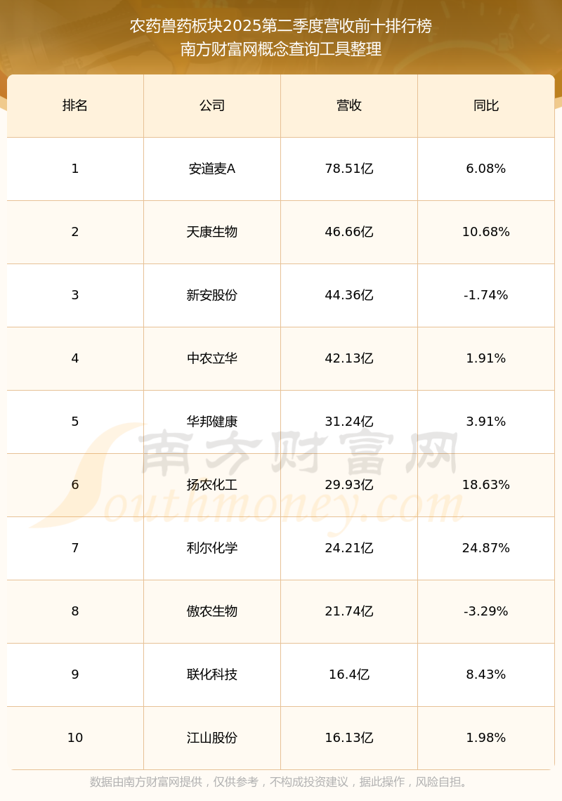 按照南方財富網(wǎng)概念查詢工具統(tǒng)計,該股所屬板塊為農(nóng)藥獸藥板塊,該板塊共有42只股票,新安股份2025第二季度營收在該板塊中排名為第3名,該板塊2025第二季度營收排名前十的股票如下表:
